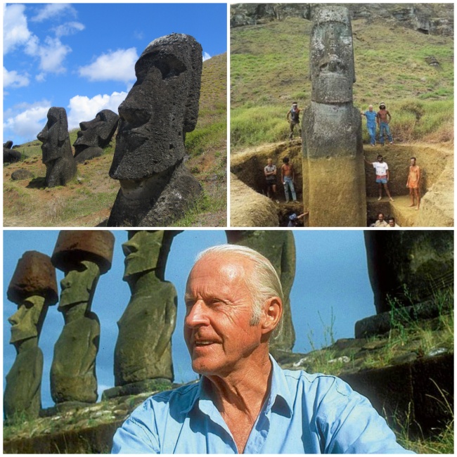 بالاخره معمای سرهای ایستر آیلند توسط شخصی به نام ثور هیردال کشف شد. او نخستین کسی بود که در این مکان حفاری انجام داد. در نتیجه این حفاری بدنه سرهای ایستر کشف شد. ارتفاع بعضی از آن ها حدود ۶ متر است. این مجسمه ها با ابزارهایی که در آن زمان معروف بوده استفاده می شده است.